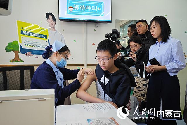 内蒙古自治区四价HPV男性首针接种仪式现场。人民网记者 张雪冬摄